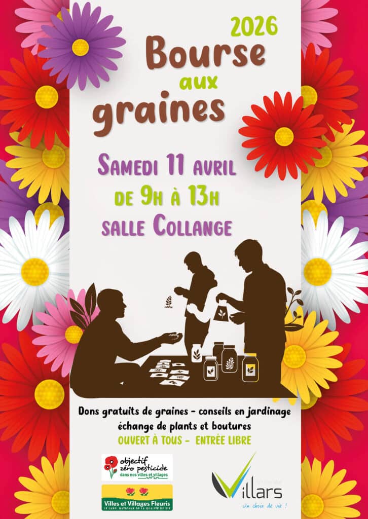La Mairie de Villars organise une bourse aux graines samedi 11 avril 2026, de 9h à 13h, salle Collange.